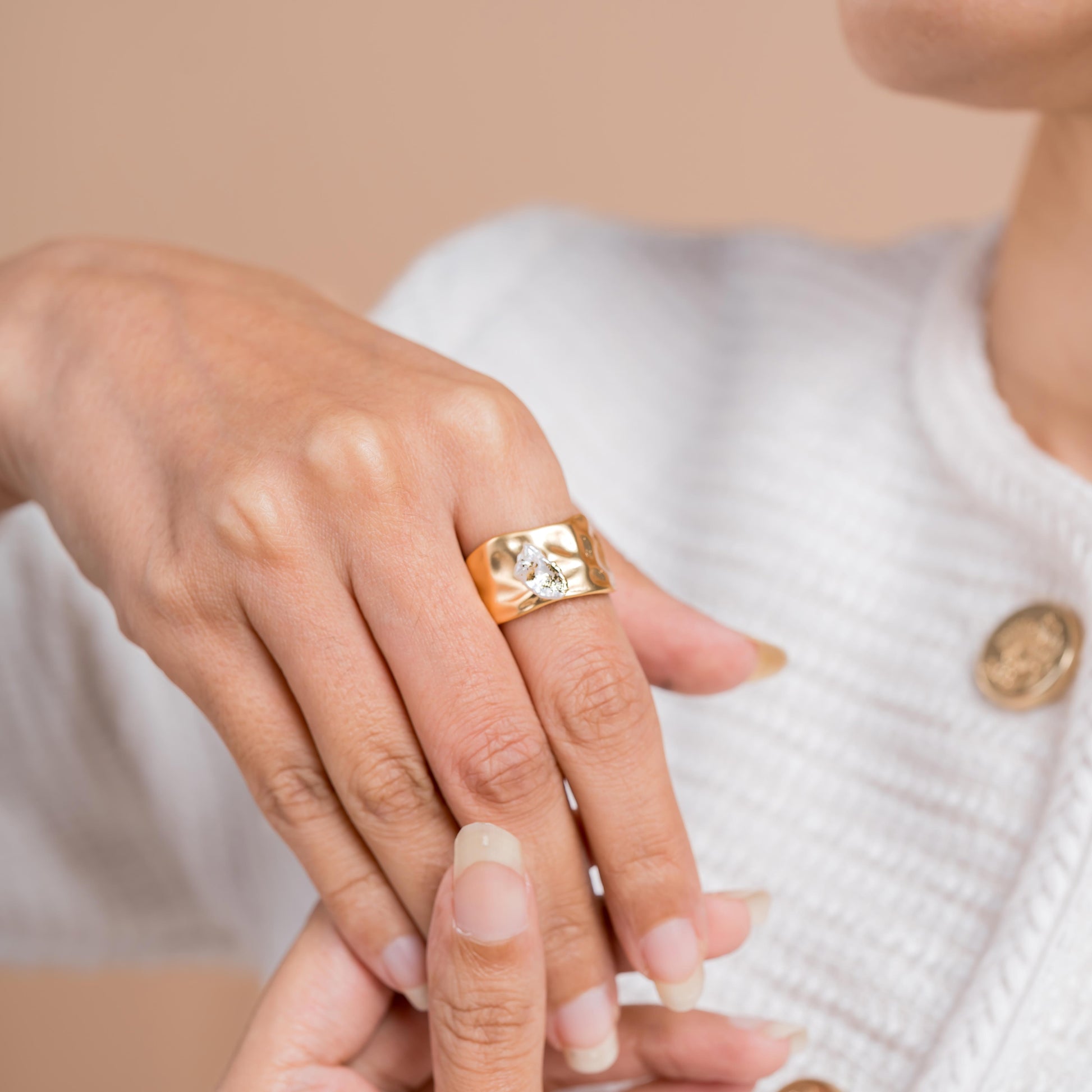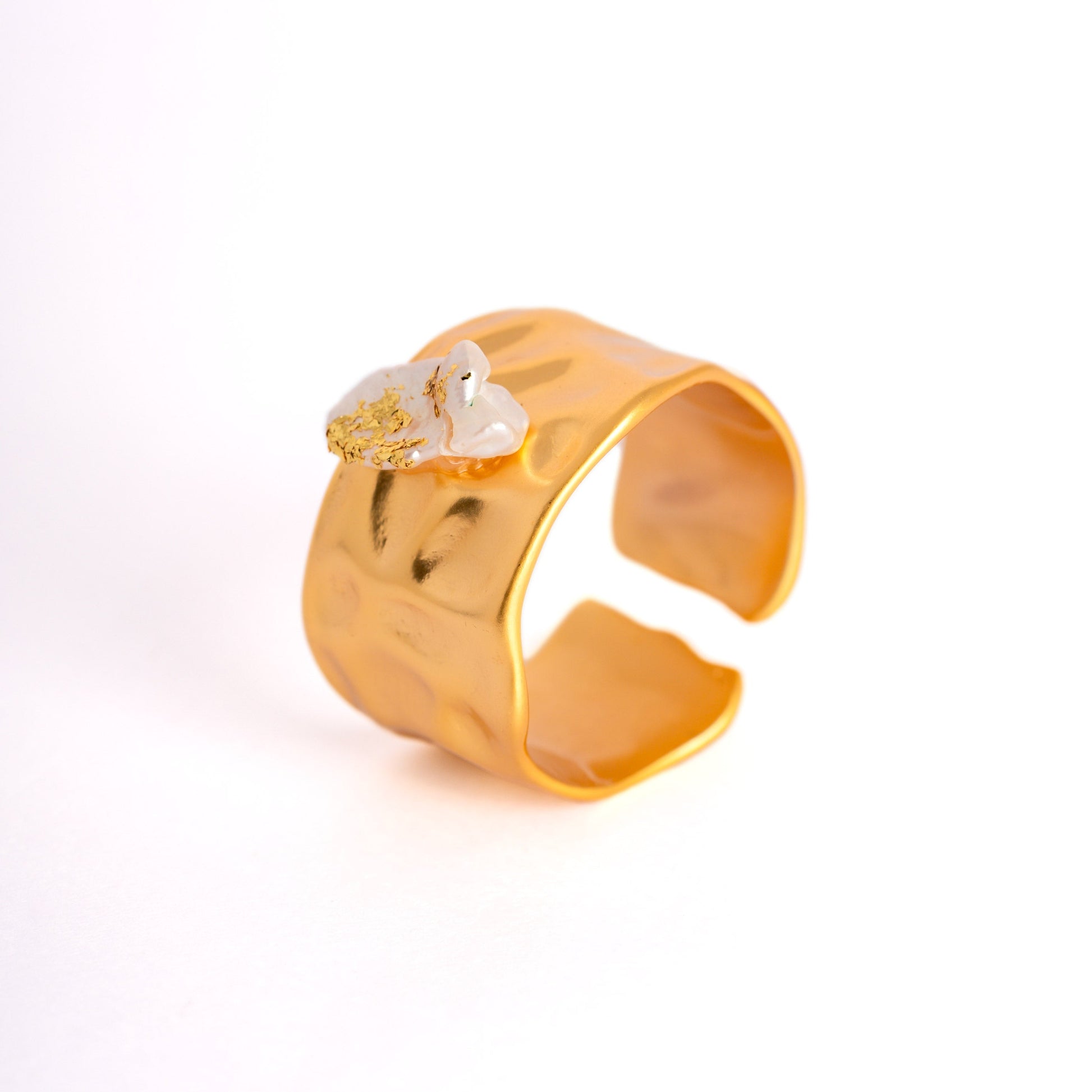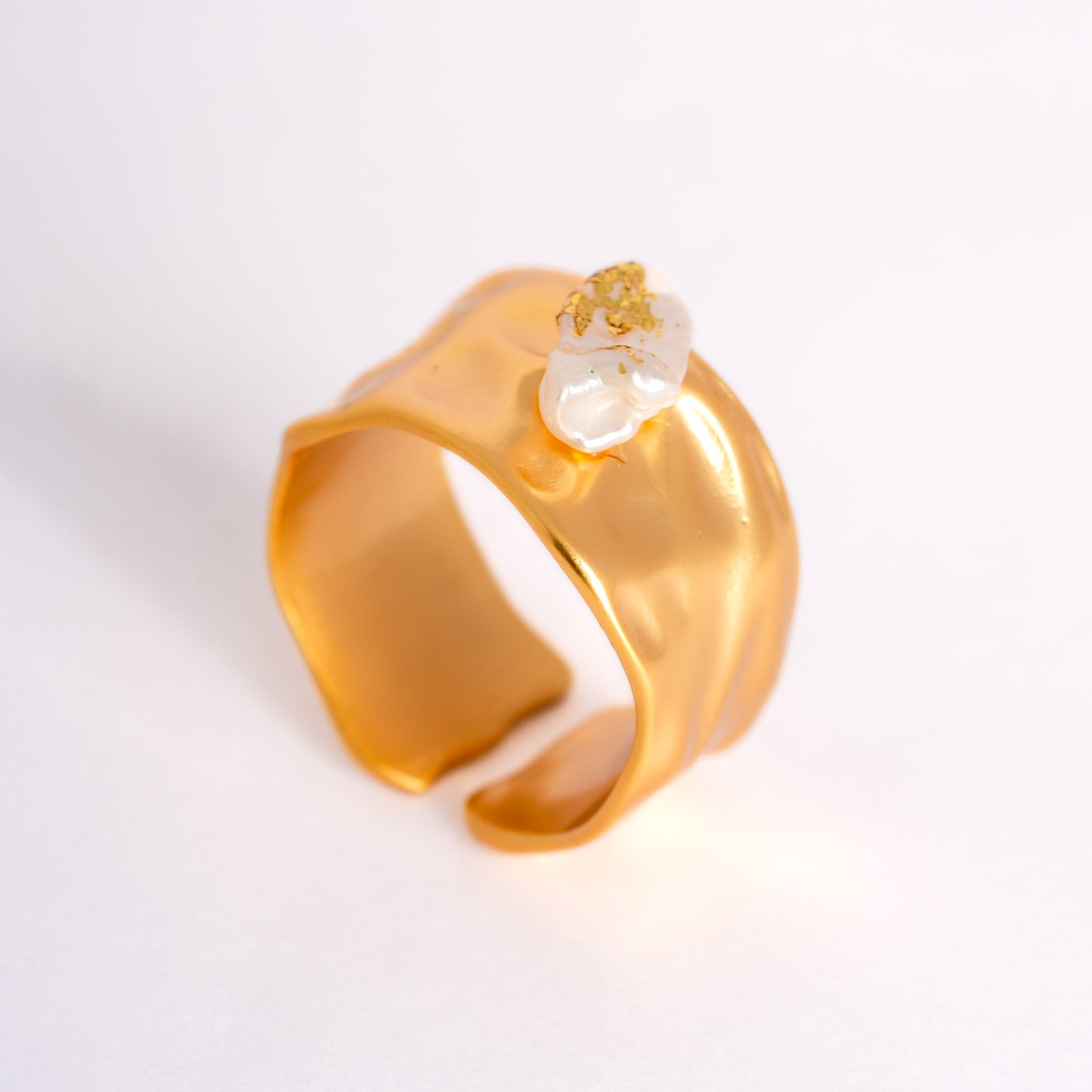 Minimalist gold band crowned with a lustrous pearl is a symbol of timeless beauty. This ring is perfect to add a hint of sophistication in your everyday look.