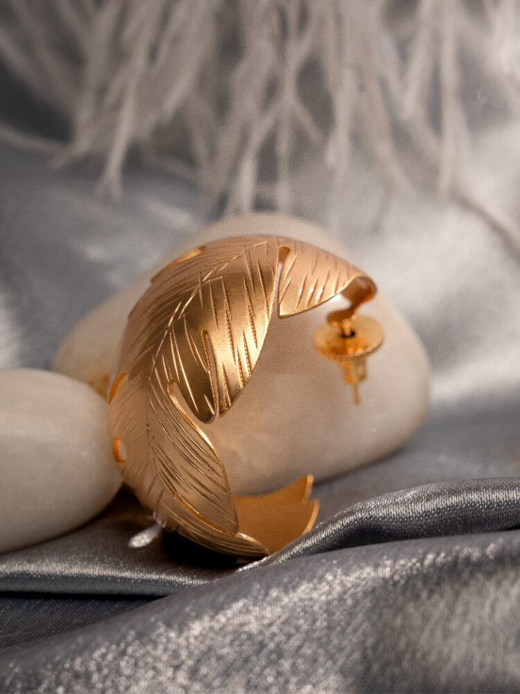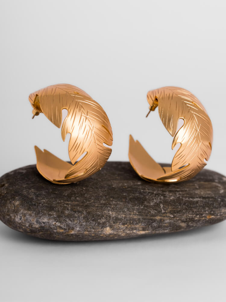 These stunning leaf-shaped hoops add a touch of sophistication and whimsy to any outfit. The elegant curves and intricate details makes a great addition in your jewelry box.